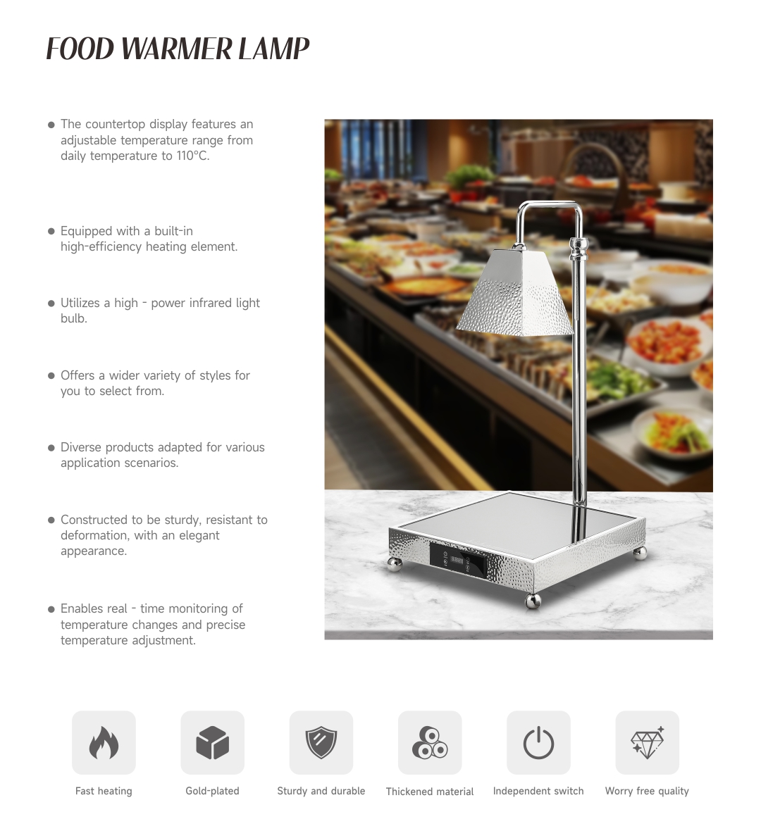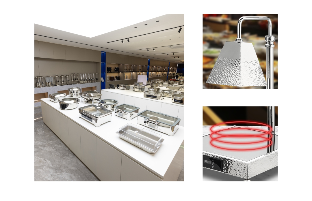 • Kisaran suhu 50–95 °C, dapat disesuaikan untuk menjaga panas penyajian hidangan tetap sempurna