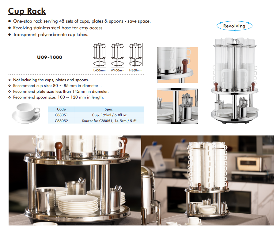 1. Rak terpadu yang menyajikan 48 set cangkir, piring & sendok - menghemat ruang.