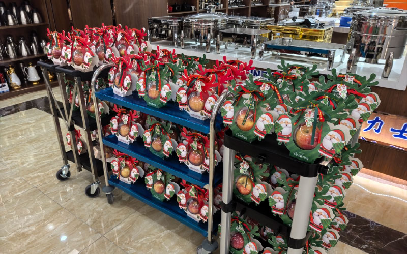 Nyanyikan sebuah lagu, “Kami mengucapkan Selamat Natal, kami mengucapkan Selamat Natal….”, dikemas dengan indah dan apel merah besar bersama artinya kedamaian, dan kemudian Sinterklas kami mengirimi kami dua apel damai per staf kebahagiaan ganda, wah, manis sekali seperti keluarga besar.